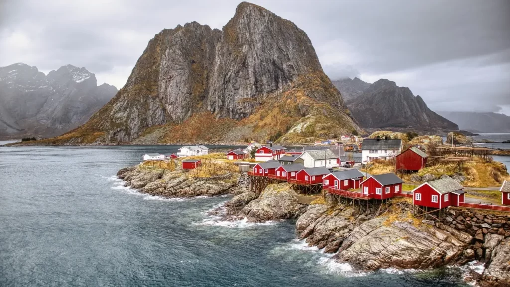 羅弗敦群島(Lofoten Islands)最有代表性的景觀之一,就是色彩繽紛的傳統漁民小屋 Rorbu(複數:Rorbuer)。這種建築最早出現於中世紀,原本是為了在冬季捕鱈魚(cod fishing season)時,為遠道而來的漁民提供臨時住宿與儲藏空間。由於漁業活動必須靠近海域,小屋多半直接建在海岸邊,有些甚至架在木樁(stilts)上,延伸至海面,方便漁船直接停靠,將漁獲運送到屋內進行處理或儲存。