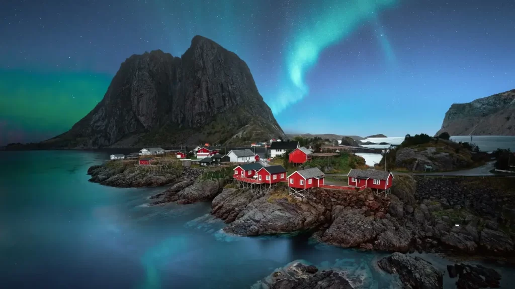 在羅弗敦群島,觀賞極光的地點十分多樣:你可以站在海岸邊,讓極光倒映在寧靜的峽灣中;也可以登上小山丘,俯瞰整片島嶼被光暈籠罩的景色。部分幸運的旅人甚至能在住進傳統漁民小屋(rorbu)時,透過窗戶直接看到極光在天際舞動。這樣的體驗,不僅省去舟車勞頓,更將浪漫與奇幻融合在住宿中。極光並非每晚必現,因此追極光也充滿了未知與驚喜。許多遊客形容,當第一道綠光在天邊出現時,心中會湧起一種無法言喻的感動——那是一種既遙遠又真實的連結,彷彿與宇宙進行了一場短暫的對話。
